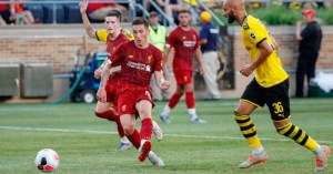 Borussia Dortmund ได้ขยับตัวลิเวอร์พูลด้วยสกอร์ 3-2 ในช่วงพรีซีซั่นเมื่อวันศุกร์ที่สนามกีฬา Notre Dame Stadium ในรัฐอินเดียนา ความพยายามเริ่มต้นของ Paco Alcacer สำหรับ Dortmund ถูกยกเลิกโดย Harry Wilson แต่ Thomas Delaney และ Jacob Bruun Larsen วางตำแหน่งผู้วิ่งในบุนเดสลีกาตามเครื่องหมายชั่วโมง Rhian Brewster